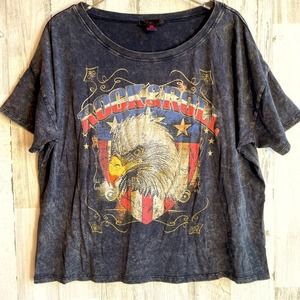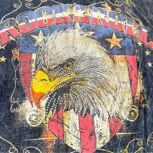 Eagle Rock & Roll T Shirt XL Black Distressed Wash Crystals Flag U…