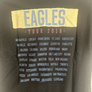 Bought at the Houston stop of the 2018 Eagles An Evening with the Eagles Tour, this is such a cool band tee. It features all of the tour stops as well as the tour name and year. Bought at the tour seven years ago, this is a super unique piece!