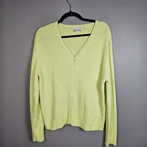 Eagle's Eye Cardigan Sweater Long Sleeve Lime Green Cotton Button Front Sz XL