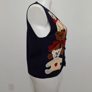 Eagle’s Eye Collectibles 3-D Vintage Grandmacore Teddy Bear V-Neck Knit Vest L