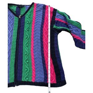 Eagle's Eye Color Block Multicolor Full Zip Vtg Knit Sweater Woman's XL |