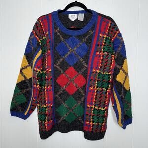 Eagle’s Eye Sport 1995 90s Vintage Men’s Hand Knit Argyle Geo Sweater Size Small