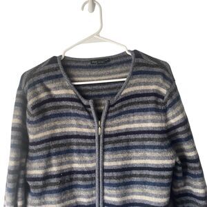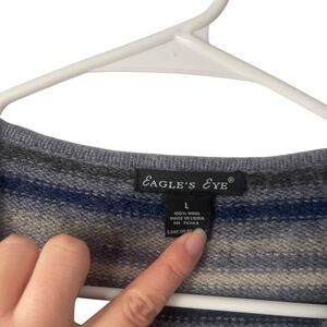 Eagle's Eye Vintage 90s Large 100% Wool Blue Striped Grunge Full Zip Sweater