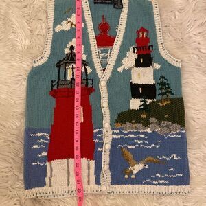 Eagle's Eye Vintage Lighthouse Coastal Themed Cardigan Sweater Vest Womens Sz L