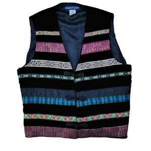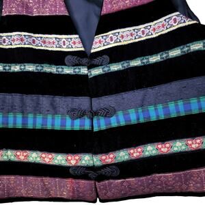 Eagle’s Eye 1996 Women sz M Vintage Black Velvet Ribbon Frog Closure Vest