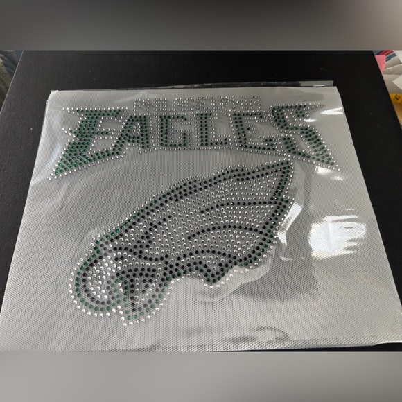 Sparkling rhinestone design featuring the Eagles logo. Perfect for fans.