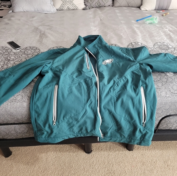 Bought this for my son who was a HUGE Eagle's fan... NEVER worn... brand new..it's says xlarge but fits as a large...for women/men