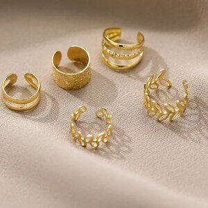 5pc set Ear Clips Rings Bands Gold Tone Adjustable Beach Summer Vacation Hippie Boho