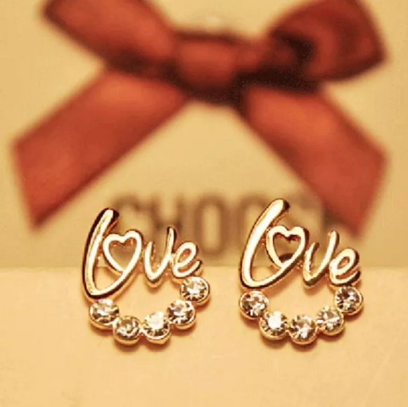 Cute crystal love stud earrings!!