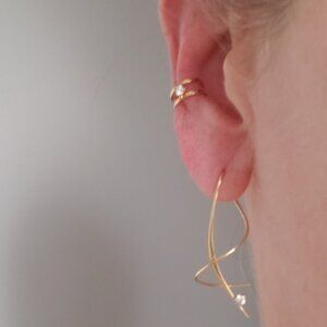 14K gold ear cuff with a cubic zirconia gem. Pairs beautifully with the 14K cubic zirconia ear spirals.