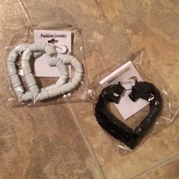 White and black heart ear rings. Sexy and fashionable with any out fit.
