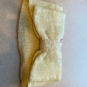 Knit headband for an ear wrap, bow design at the center front.
