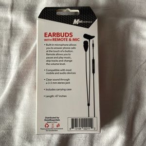 Unused, never opened earbuds. Has built in mic.