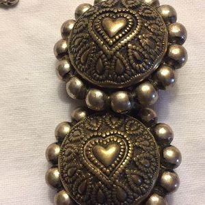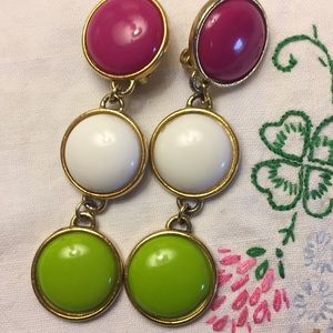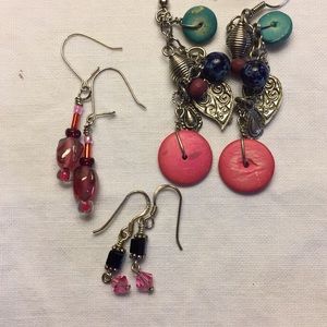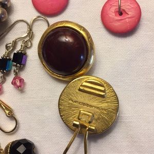 10 pairs of earings! Small pewter color posts with tiny rhinestone,4 clip on -vintage black glass very glam,round Liz Claiborne brown center,1 round sliver and bronze color with heart. Vintage pink white and green .And