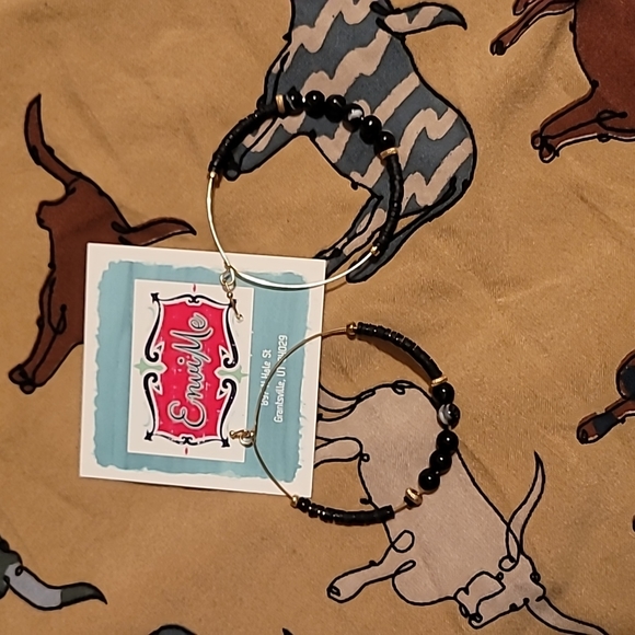 Black and gold earrings. 2 in by 2 in.