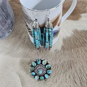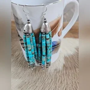 Native American made tassle and Navajo pear sterling silver earrings. The tops of the earrings were made to look distressed.