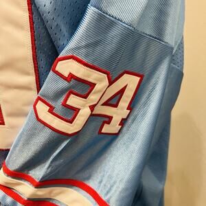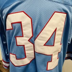 The product is a 4XL blue jersey featuring Earl Campbell from the Houston Oilers, part of the "Players Of The Century" collection by Jeff Hamilton. This unisex adult jersey is a must-have for fans of the National Football League (NFL) looking for quality apparel to represent their favorite player and team. Perfect for game days or casual wear, this jersey is a unique and stylish addition to any football fan's wardrobe.