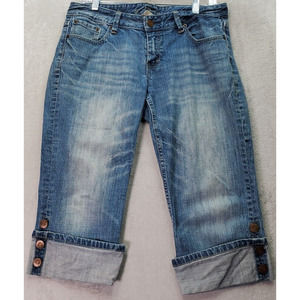 Earl Capri Jeans Womens Size 31 Blue Denim Cotton Pockets Flat Front Medium Wash