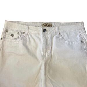 Earl Cropped White Jean Sz. 14X18 Cuff Hem Flap Pockets Stretch Rhinestones