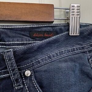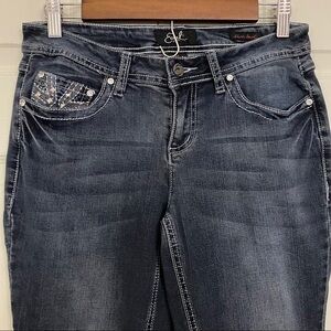 Earl, Rhinestone, Embellished, Back Flap Button Pocket, Denim Jeans