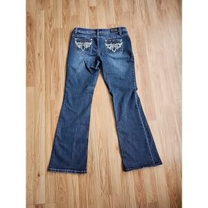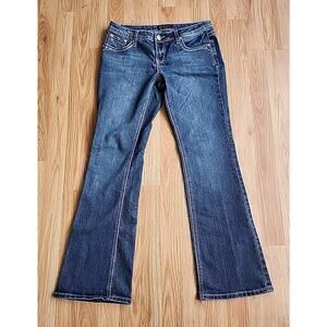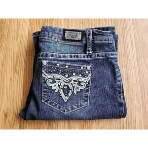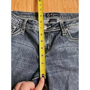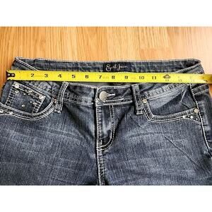 Earl Jean 7 Denim Bootcut Low-Rise Embroidered Rhinestones Thick Stitch 30/29