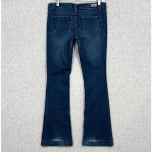 Earl Jeans Low Rise Flare Blue Denim Pants. Women's Junior size 9. Good condition. Some heel wear on back of hem, noted in photos.