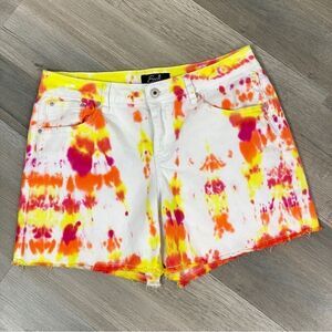 Earl Jean Tie Dye Raw Hem Jean Shorts White Orange 10