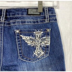 Earl Jean Womens Size 5 Capri Crop Jeans Stretch White Stitching Embellished