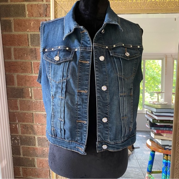 Earl Jeans Dark Wash Denim Vest w. Bejewelled Buttons & Accents Size L