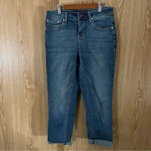 Earl Jeans Floral Embroidered Blue Cropped Ankle Jeans