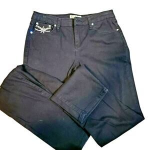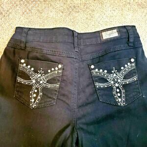 Earl Jeans Size 6 Embellished Black Denim Metallic 5-Pocket Front & Back Stretch