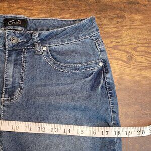 Earl Jeans Size 8 Skinny Capri Mid Rise Fleur De Lis Button Flap Embellished