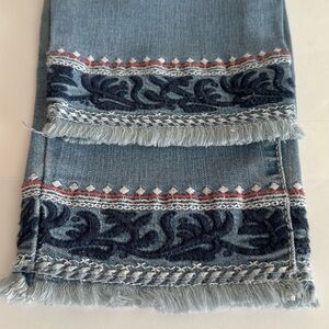 Earl Skinny Ankle Jeans. Zipper fly with button closure. Zipper fully functional. 5 pockets. Light blue Size 12. Ankle accent gives Boho vibes. Stretchy. No holes, rips or tears. Stain free. 53% Cotton, 23% Polyester, 17% Rayon, 2% Spandex. Pet free smoke free environment.