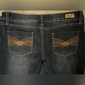 Brown gold detail on back pockets. Women’s size 11 worn twice. Straight leg softer Jean/denim material. Length 30. Barely worn. The perfect jeans