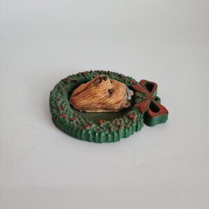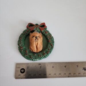 Earl Sherwan Charmstone Yorkie Dog Profile In Wreath Christmas Tree Ornament