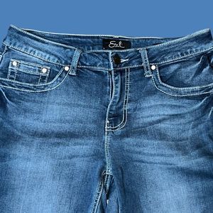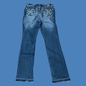 Earl Slim Bootcut Stretch Dark Wash Mid Rise Flap Pockets Embroidered & Bedazzled Size 10