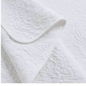 Earl & Wilson Medallion Stitched Full Size Cotton Quilt Coverlet in White