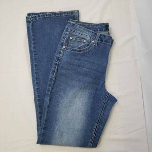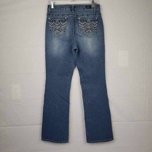 Earl Women's Boot Cut Jeans Blue Whiskered Embroidered Medium Wash Denim 10