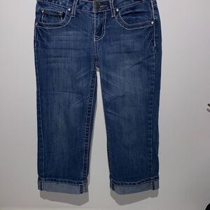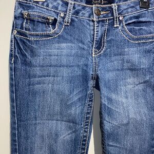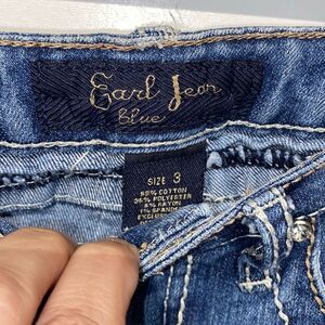 Earl Jean Women's Blue Stretch White Stitching Embellished Cropped Jeans Size 3