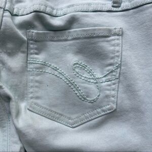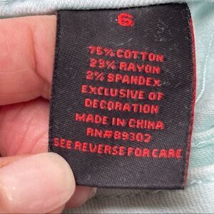 What I Love About It: Light aqua color - perfect for summer! Nice brushed denim fabric. Classic five pocket styling.