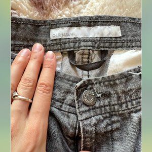 Mid-rise Old Navy wide-leg trousers in versatile dark gray. I used to call these my "booty pants" because boy howdy, do those slit pockets accentuate your...assets! :) Worn and loved but in great condition. Not a lot of stretch to the fabric so it maintains fitted to flare shape. Dress 'em up or down for work or play.