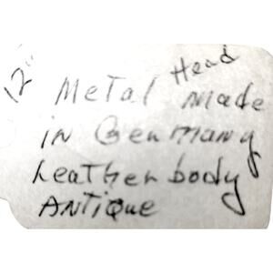 Early 1900s Antique 12” Minerva Tin Head Doll w/Jointed Kid Leather Body German