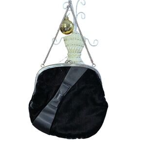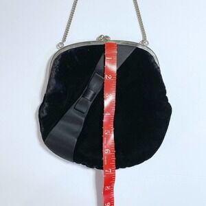 Early 1900s Black Velvet Evening bag clutch bow small chain strap.