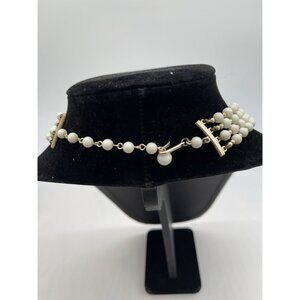 Early 1950's Simulated Pearl & Gold Tone Beads 4 Strand Necklace, Adjustable, 1