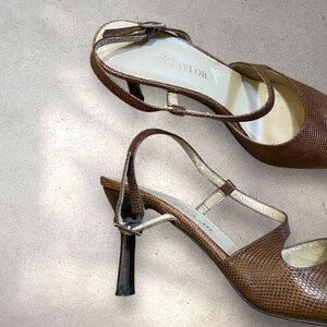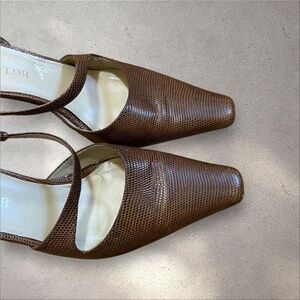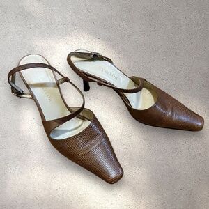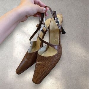 Early 2000s Ann Taylor Made in Italy Brown Lizard Print Pointed Heel Pumps