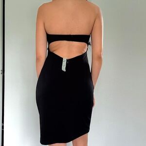 black club dress, strapless bodycon, cutout party dress, y2k it girl look