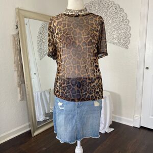 Early 2000's Grunge Bratty Party Euro Sheer Animal Leopard Mesh Blouse Top L