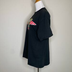 Early 90s Jerzees Tee Shirt Maxine Cartoon Sz Large 100% cotton made in USA Black with front graphic Maxine with a motorcycle red wings and says Born to be Riled shes got a cigarrette in her hand with smoke plume and her ? dog? great condition with mild fade distributed by hallmark shoebox line Measurements laying flat Bust; 21.5" length; 30" Shoulders: 20" Sleeve: 9" P23