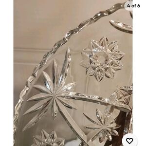 The product is a vintage 1970's Anchor Hocking Glass Star of David platter from the Early American Prescut collection. This clear glass platter features a round shape with an All-Over pattern and decorative design typical of Mid-Century Modern style. Made in the United States using pressed glass production technique, this original piece is a perfect addition to any collection of American-themed vintage glassware. No chips or cracks. Mint condition.