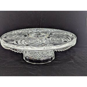 Early American Pressed Glass Pedestal Cake Plate Glassware